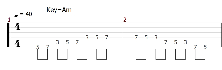 ちなみにスケール練習に限りませんが、必ずメトロノームを使って、弾けるBPMから少しずつテンポを上げて練習してくださいね!